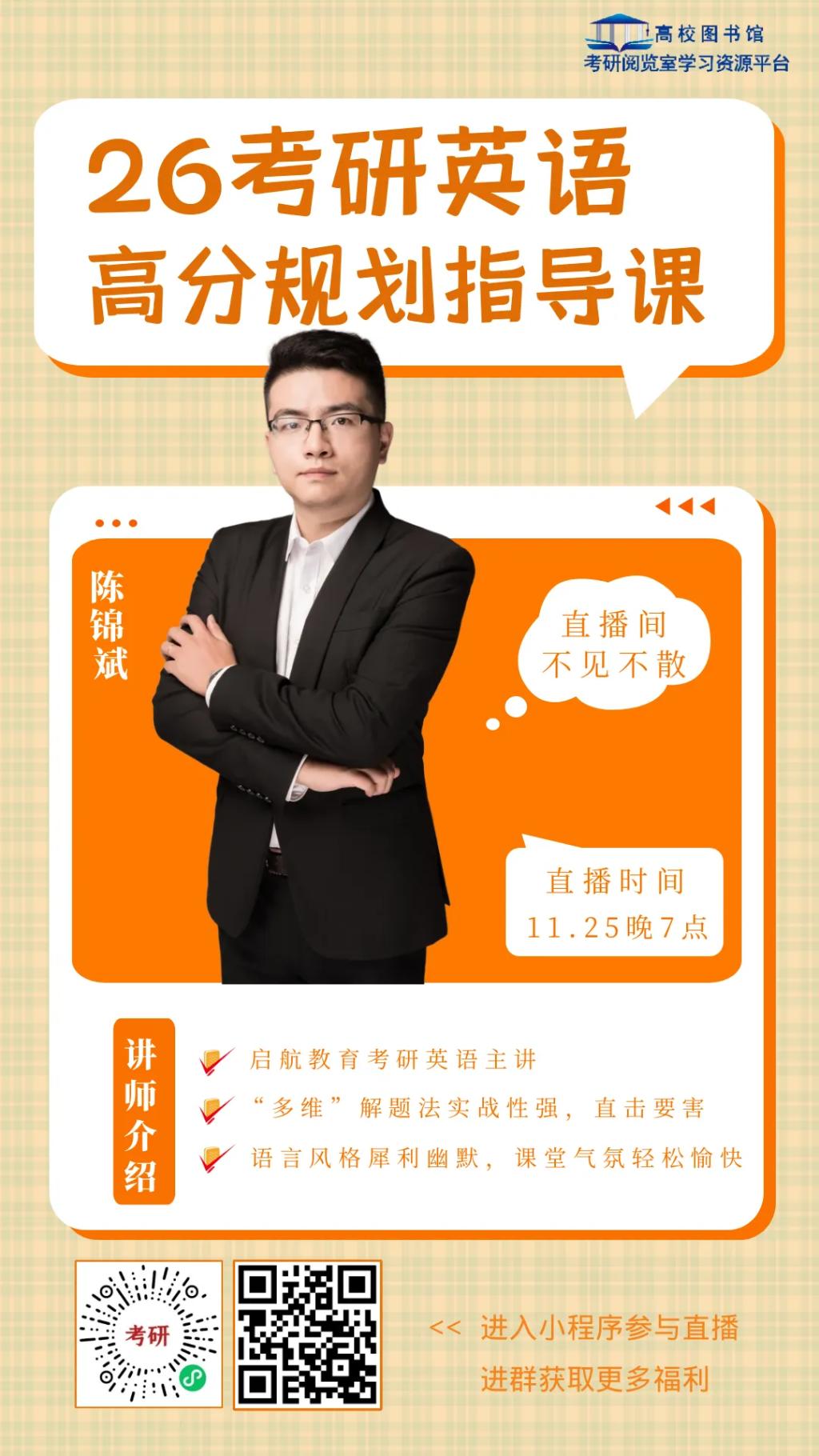 高校图书馆考研阅览室学习资源平台,11月21日、11月25日为同学们安排了2场直播,具体安排如下,欢迎大家关注。